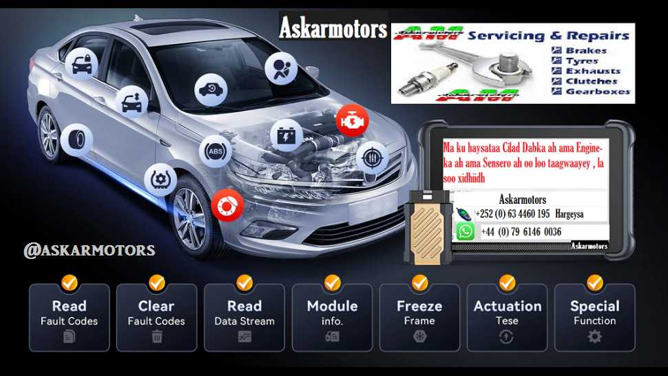 Waanu ku faraxsan nahay inaad soo booqatay mareegtayada online-ka, oo aad ka heli kartid macluumaadka dhamaan hawlaha aanu qabano, haday tahay inaad Baabuur iibsatid , ama inaad balan service samaysatid ama shaqo kale oo baabuurkaaga aad rabtid in lagaaga qabto. ama Taayiro iib ah Rabtid Cusayb iyo Mustacmalba, dhamaan hawlahaas oo dhan kaga bogo qaybaha hoose..